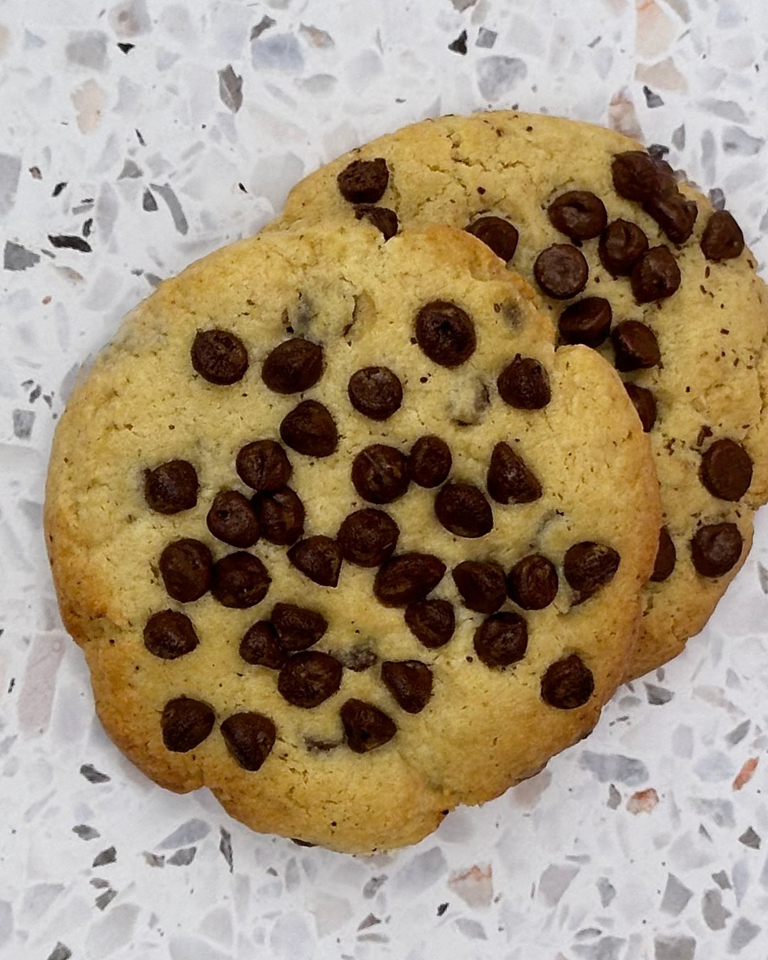 azúcar blanca, azúzcar morena, bicarbonato de sodio, canela, chispas de chocolate, huevo, polvo de hornear, manteca, sal.