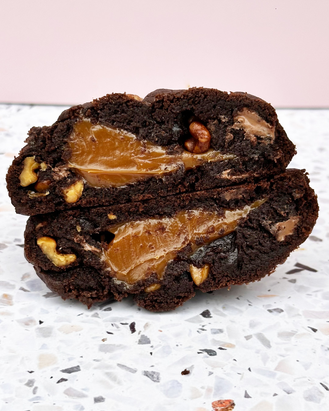 Presentamos una masa de chocolate con nueces tostadas y relleno del clásico y único dulce leche, nuestro y bien uruguayo.